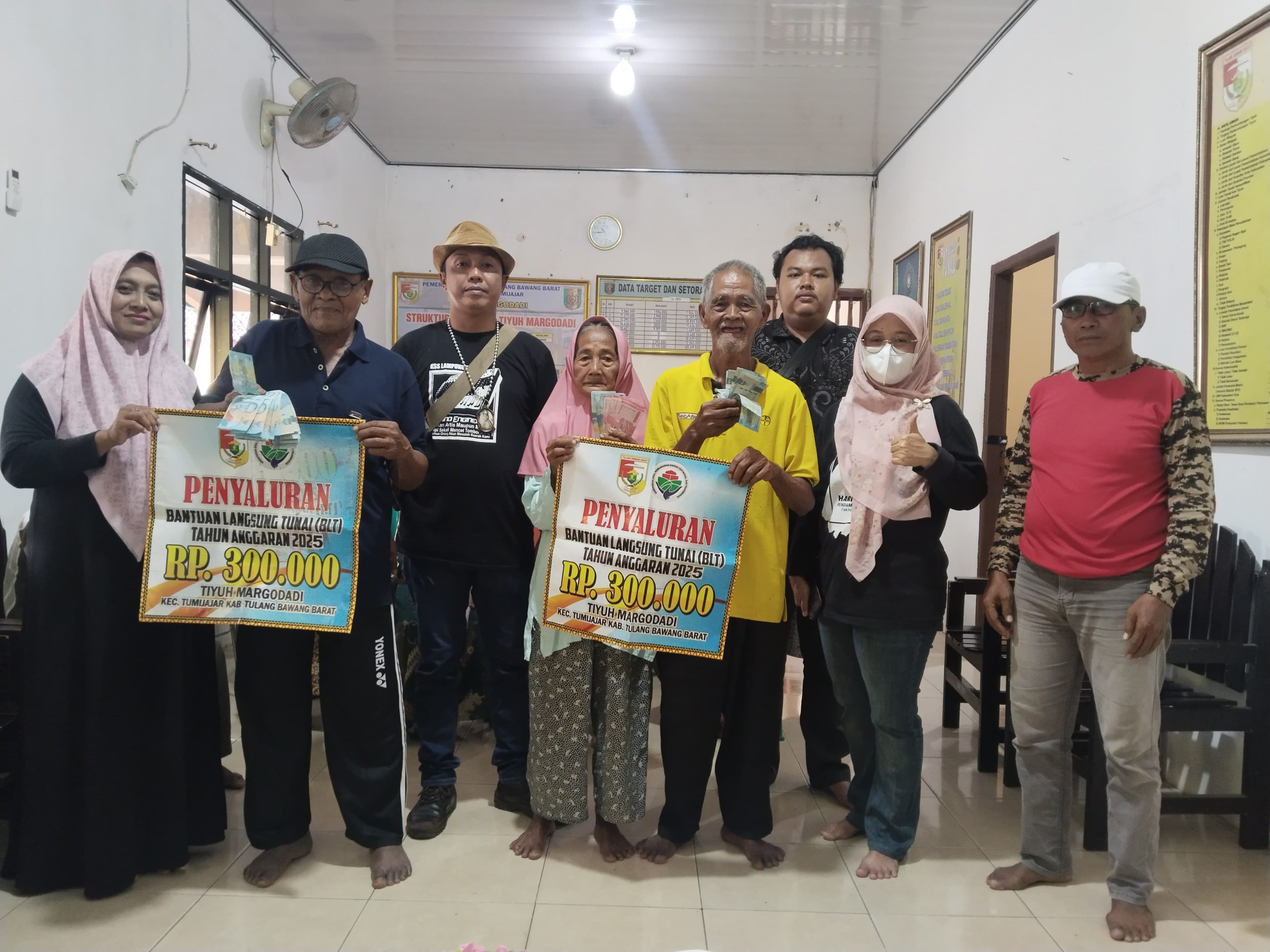 Tubaba, indonewsmedia.com – Pemerintah Tiyuh Margo Dadi, Kecamatan Tumijajar, Kabupaten Tulang Bawang Barat (Tubaba), Provinsi Lampung, menyalurkan Bantuan Langsung Tunai Dana Desa (BLT-DD) tahun 2025 kepada 31 Keluarga Penerima Manfaat (KPM).