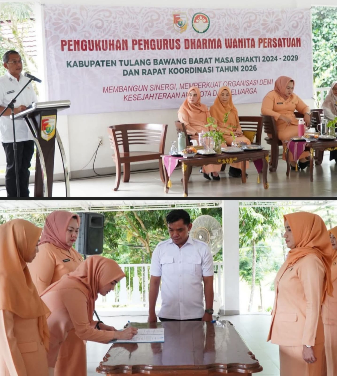 Tubaba, indonewsmedia.com – Suasana khidmat menyelimuti Aula Rumah Dinas Bupati Tulang Bawang Barat, Rabu (11/02/2026), saat Pengurus Dharma Wanita Persatuan (DWP) Kabupaten Tulang Bawang Barat masa bakti 2024–2029 resmi dikukuhkan. Kegiatan tersebut dirangkaikan dengan Rapat Koordinasi DWP sebagai langkah awal menyatukan visi dan program kerja ke depan.